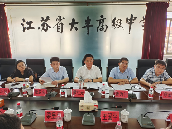 10月9日上午,全市普通高中“质量建设校校行”活动首站来到江苏省大丰高级中学。市委教育工委书记、市教育局党委书记、局长戴红光,副局长周为仲、徐卫东和各学科教研员参加活动。