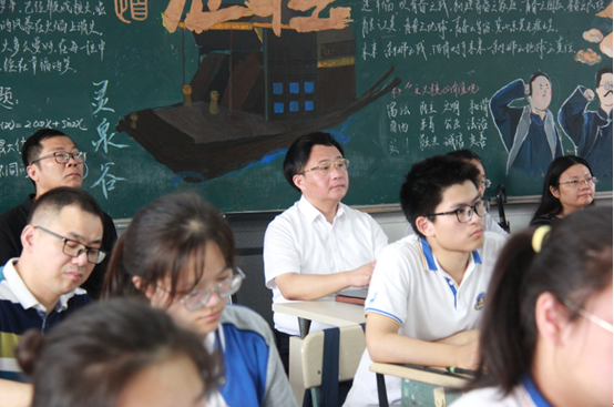在大丰高级中学期间,调研组一行到高三课堂听课、评课,查阅学校管理和教学教研资料,听取大丰区加强校长教师队伍建设、推进高中教学提质增效的情况介绍,详细了解大丰高中教育教学改革情况,共同研究探讨在新课标、新课程、新高考背景下高中教育教学所面临的挑战和应对的策略。