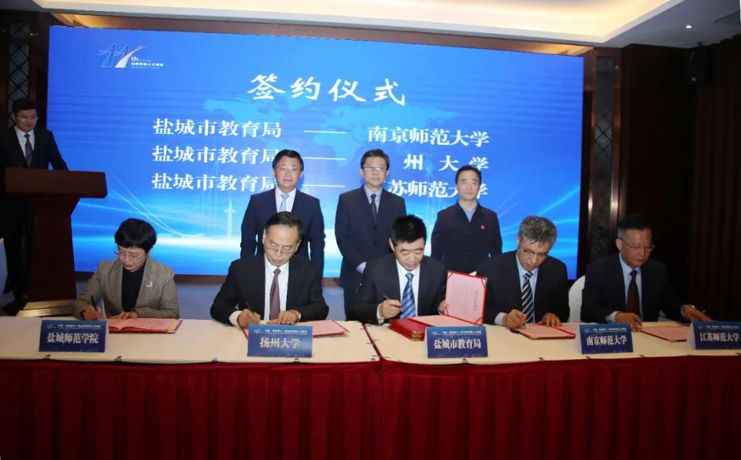在蒋巍、戴红光、丁才林共同见证下,盐城市教育局与华东师范大学、东北师范大学签订合作备忘录,与南京师范大学、扬州大学、江苏师范大学、盐城师范学院签订师范生定向选拔培养协议。盐城市第一中学与上海市格致中学、盐城市龙冈中学和上海市奉贤中学、盐城市伍佑中学和北京外国语大学附属上海闵行田园高级中学、盐城市聚亨路小学与上海市打虎山路第一小学、盐城经贸高级职业学校与上海市高等教育学会师资培训专业委员会及完美世界教育科技(北京)有限公司签约。盐城市第一小学与上海市实验学校东校、盐城市田家炳中学与上海市市西中学、盐城市教育科学院与上海世界外国语学校教授康达军、盐城机电高等职业技术学校与上海工业职业学校在市人才峰会主会场签约。因疫情防控原因,盐城市教育局将与北京师范大学、陕西师范大学、华中师范大学另选时间、地点签约。