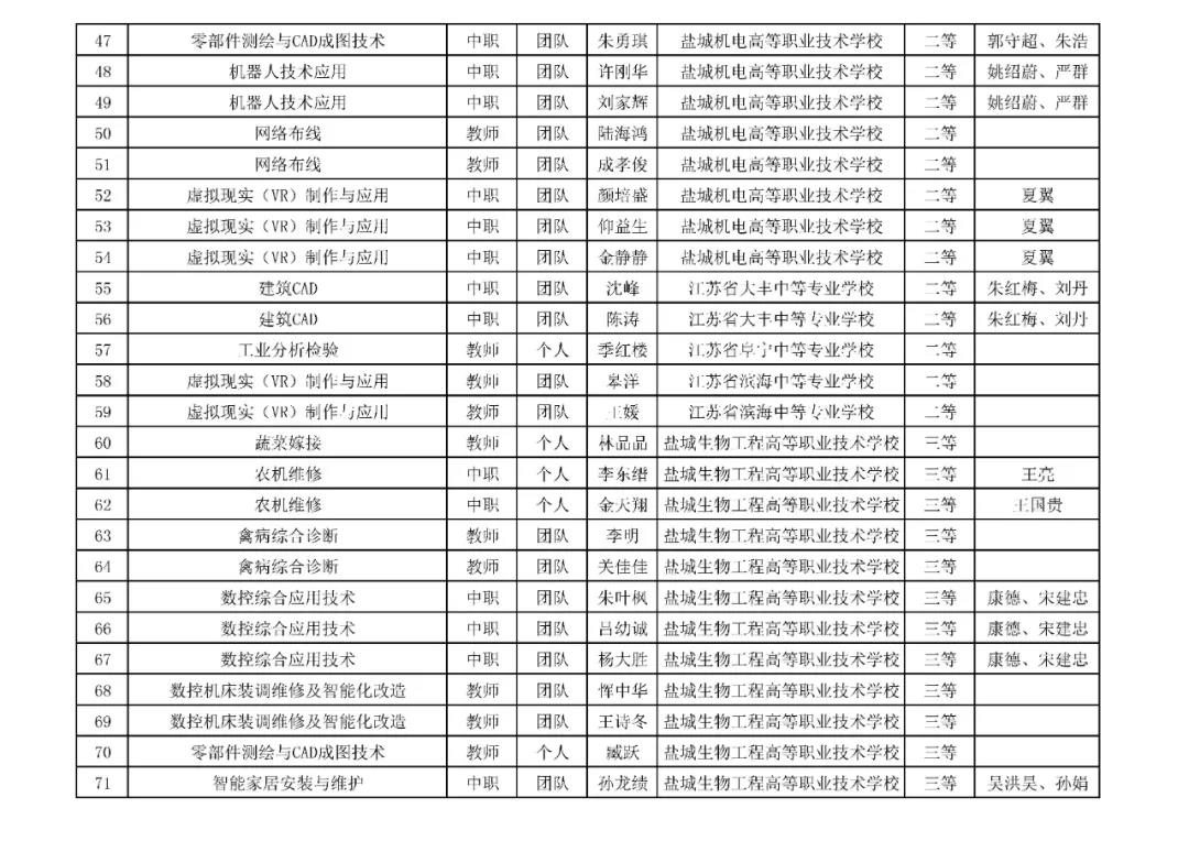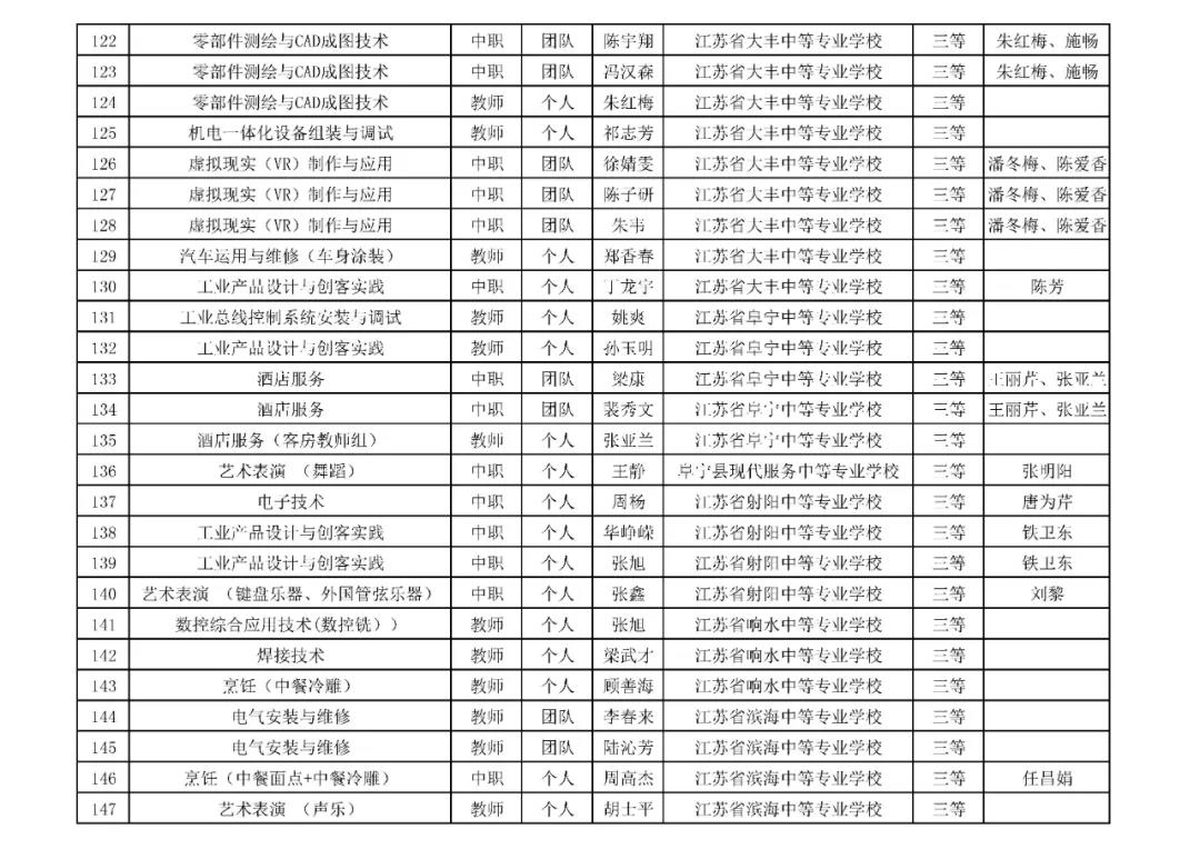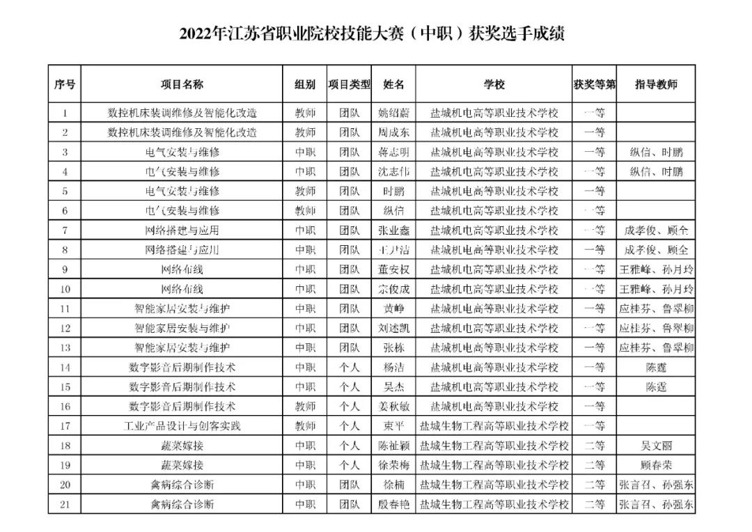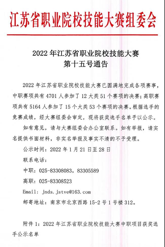 近日,省职业院校技能大赛组委会办公室发布通告,对2022年江苏省职业院校技能大赛决赛结果进行公示。我市中职校共有96个参赛团队(个人)项目被评定获奖,其中一等奖10个、二等奖24个、三等奖62个。