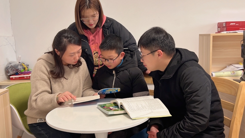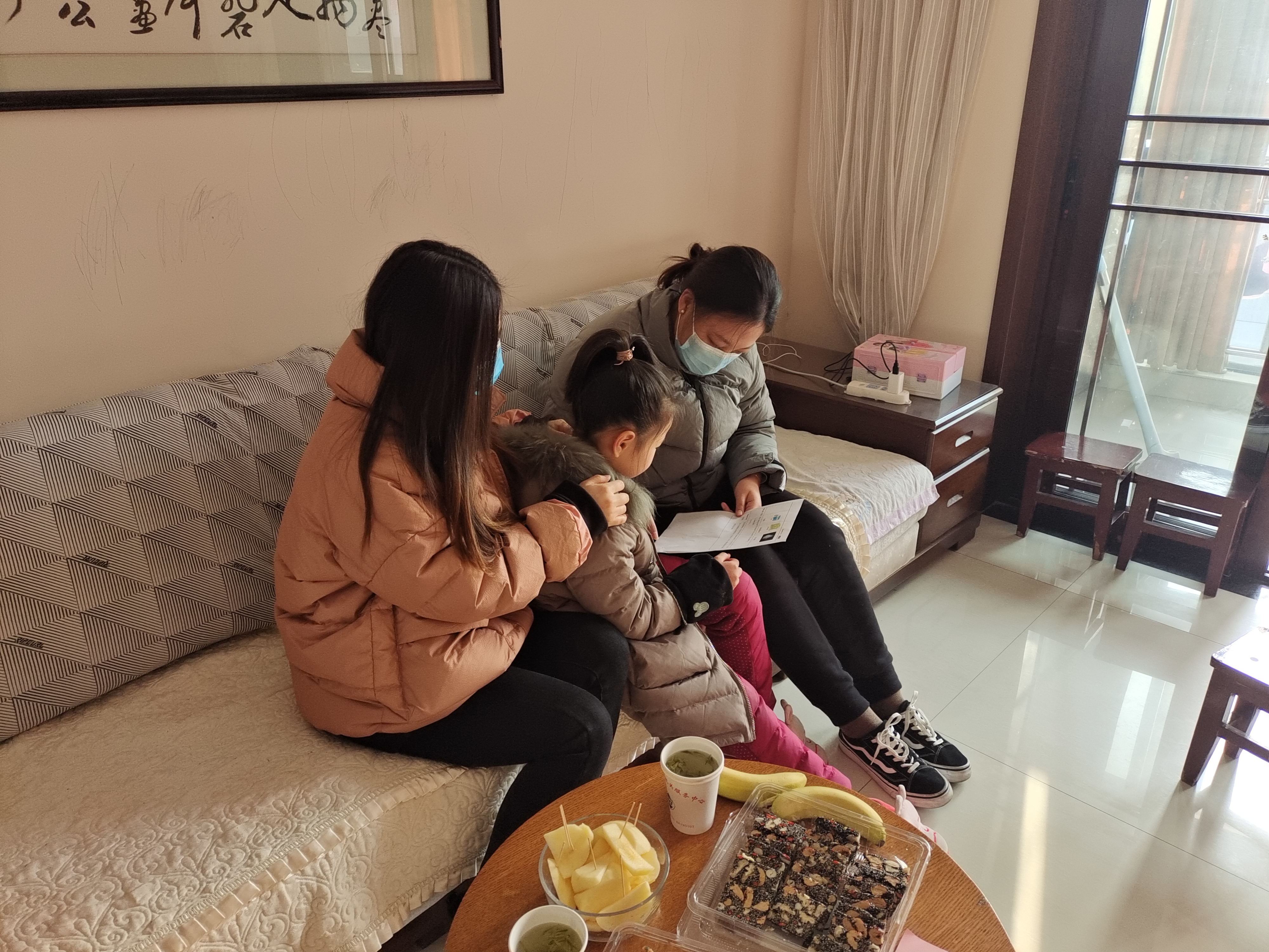 一(3)班赵同学平时在学校性格内向,许晶晶和谷文燕两位老师与家长沟通了她在校情况,并指导孩子寒假期间如何更高效地学习和阅读,并耐心地听孩子说了自己假期学习计划。