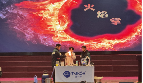 走进秀夫小学的活动现场,一场场“科技魔法秀”正在轮番上演。马德堡半球实验台前,两名同学铆足力气也无法拉开紧紧贴合的铜球,直观震撼的演示让孩子们真切感受到大气压的无形力量;“空气炮”轰然发射,一个个环形烟圈在空中徐徐扩散,引发全场阵阵惊呼;液氮与温水的奇妙相遇,瞬间升腾起如梦似幻的白雾,仿佛将孩子们带入科学秘境;静电演示环节中,站上绝缘台的同学发丝根根竖起,逗趣模样让现场笑声不断;压轴登场的“火焰掌”表演更是将氛围推向高潮,专业人员掌心燃起蓝色火焰却安然无恙,让孩子们惊叹连连。