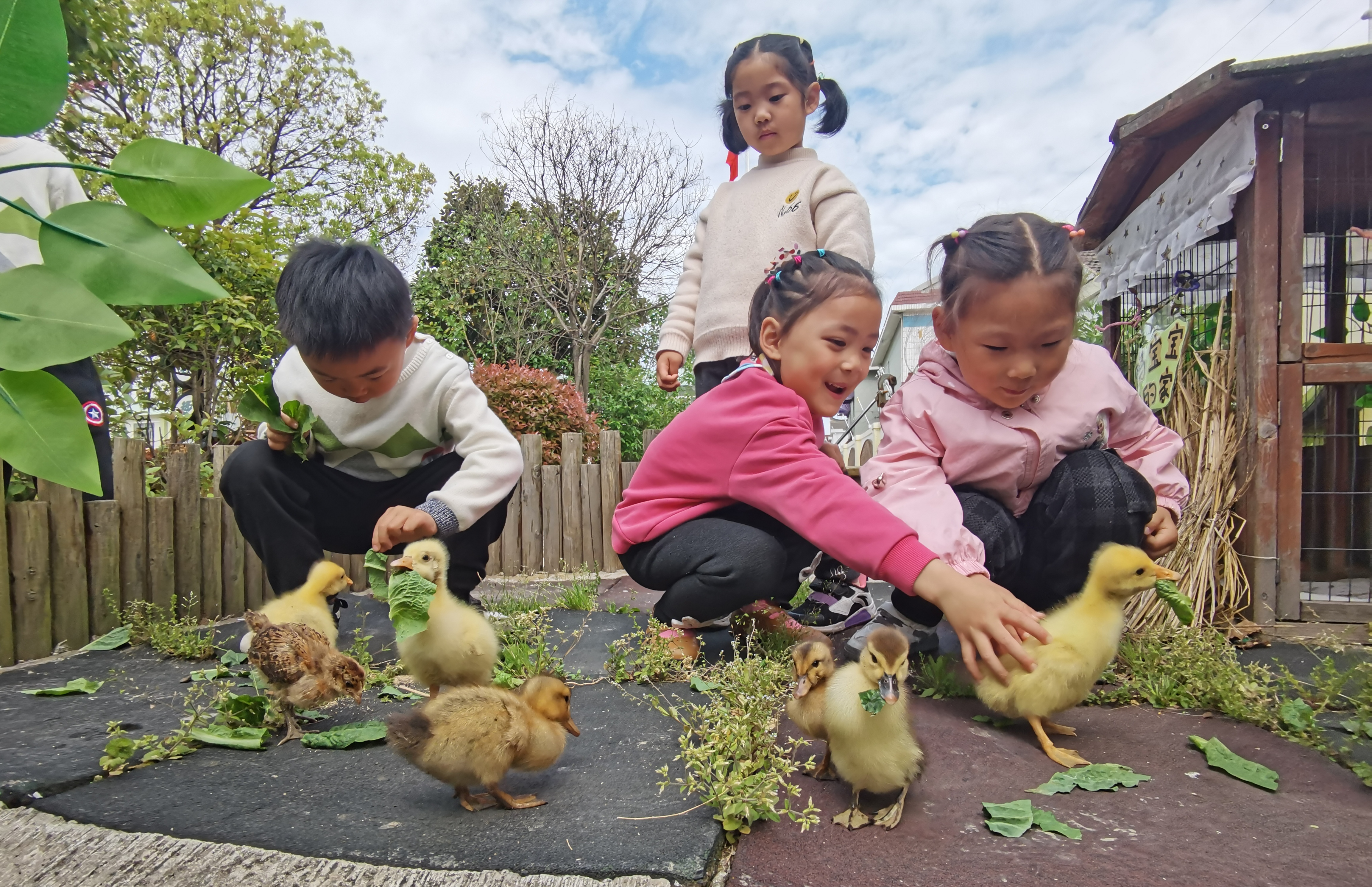 幼儿与动物嬉戏玩耍,构建和谐共生的生态理念