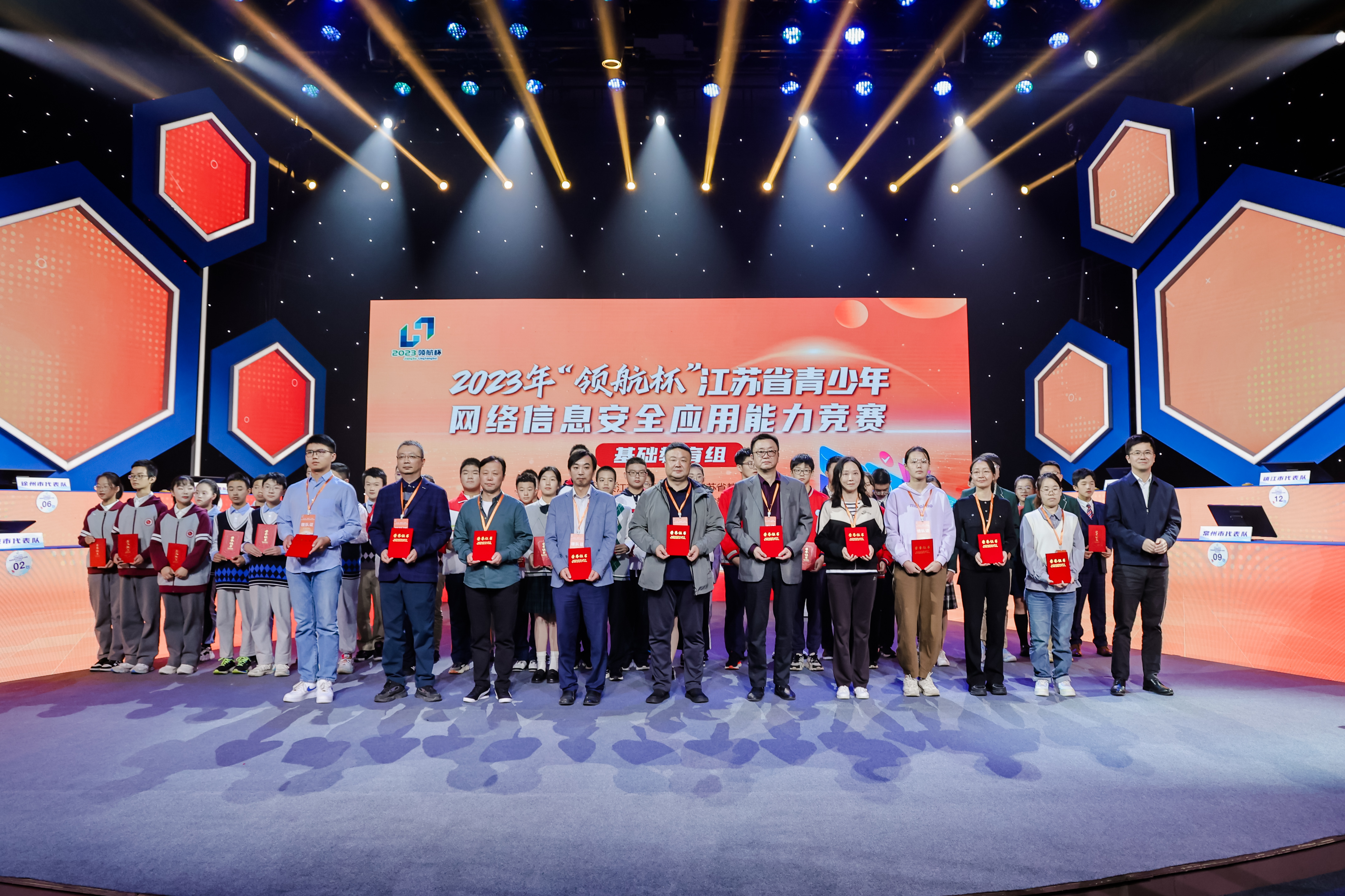 10月22日,2023年“领航杯”江苏省青少年网络信息安全应用能力竞赛(小学组和初中组)在江苏广电总台教育频道演播厅圆满举行。活动由中共江苏省委网信办、江苏省教育厅联合主办,省电化教育馆、省教育信息化中心联合承办,省广播电视总台教育频道协办。