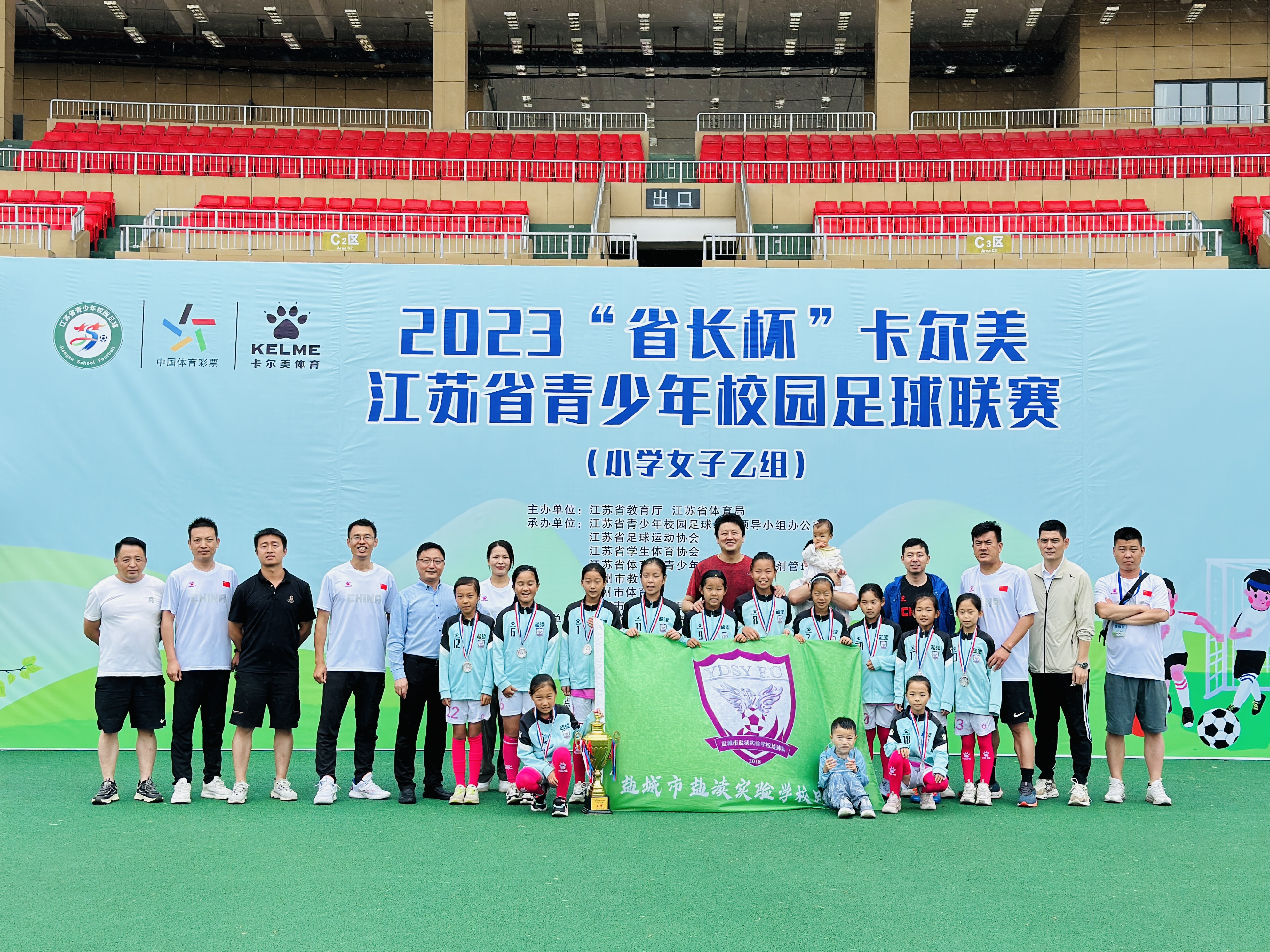 近日,2023“省长杯”卡尔美江苏省青少年校园足球联赛(小学女子乙组)完美收官,我市盐渎实验学校女子足球队(简称盐渎女足)勇夺联赛亚军!
