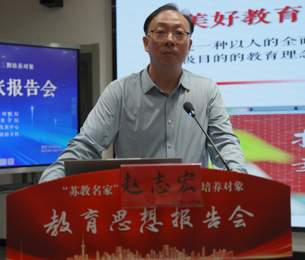 【主题报告】“苏教名家”培养对象赵志宏汇报的主题是“让师生向着美好生长”。他从“美好教育”溯源、“美好教育”内涵、“美好教育”为何、“美好教育”何为、“美好教育”实践以及“美好教育”所向六个方面进行汇报。为实现这一目标,系统规划三大实施路径:建设指向未来的“美好”文化,营造积极向上、充满活力的育人氛围;构建契合时代的育人课程体系,融贯传统根基与未来视野;培育奋发有为的“美好”师生。
